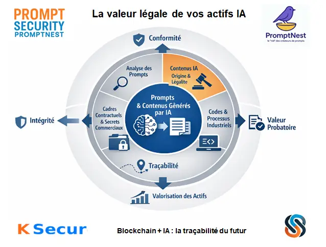Reposant sur Ksecur, une blockchain privée française, la plateforme permet de transformer des instructions d’IA en actifs numériques sécurisés, traçables et juridiquement opposables.